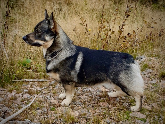 Den 1 juli 2017 födde Lea sin första valpkull här i Ausås. Pappa till den kullen är Danga´s X-Force-D, en otroligt framgångsrik hanhund. Det var en mycket olämplig dag Lea för vi hade stor släktträff hos oss och jag kunde kanske inte hjälpa henne så som jag önskat. Lea visade sig dock vara en mycket duktig och förståndig mamma och skötte valpningen med bravur. Det blev fyra stycken valpar, jämna och friska. De fick senare namnen Änglundagårds Lycka, Ljufva, Linnar och till sist Leidolf. Det blev blandat med svansar och utan svansar. Alla med grå färg och mycket fina.