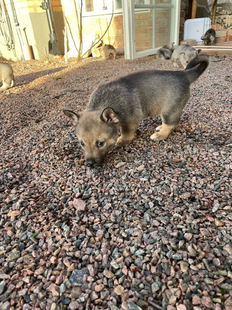Det är tre killar med svans som söker ett trevligt och tryggt hem. Änglundagårds Zack, Zamzam och Zebastian. Ett gäng otroligt pigga valpar har satt fart på hela gården. Utvecklingen går fort och just idag drygt fem veckor gamla har de varit ute för första gången.