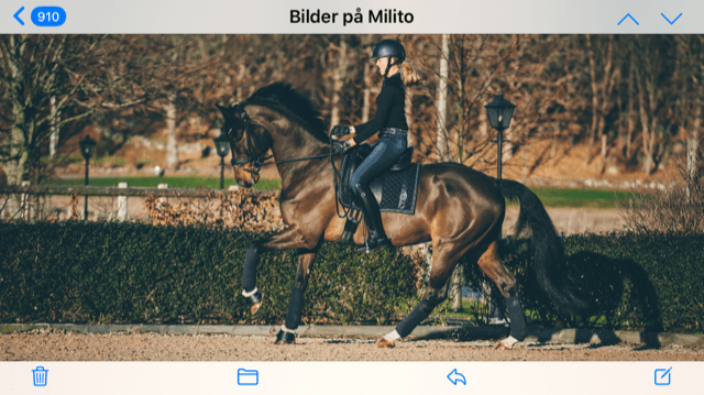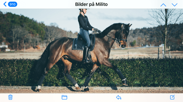 Milito har tränats och tävlats i dressyr. Han är nu såld vidare ifrån Maria Lundberg till Clara Tholen som tävlar honom i Juniorklass Msv B med full satsning framåt högre klasser.